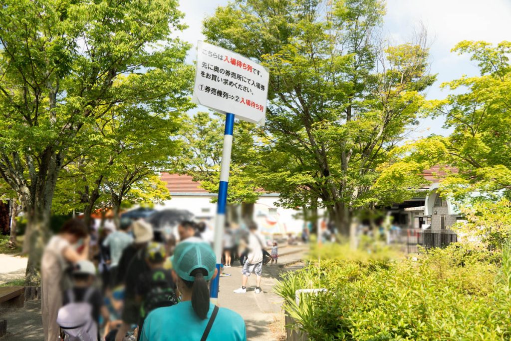 9時半ごろに様子を見に行ったところ、これからプールを利用する方々によるかなり長い列ができていました。