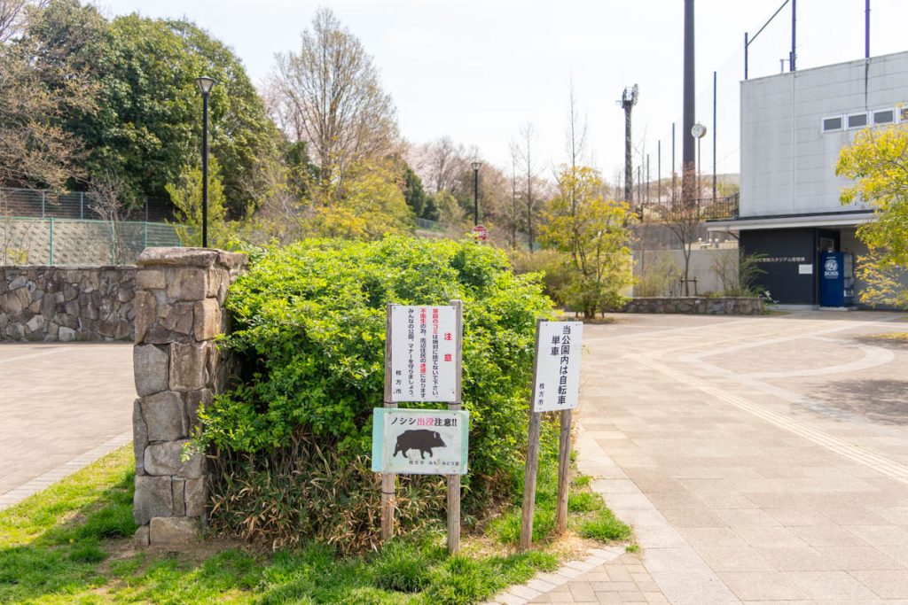 東部公園の入口にノシシはいます。ノシシ。手を振っているようにも見えるノシシ。