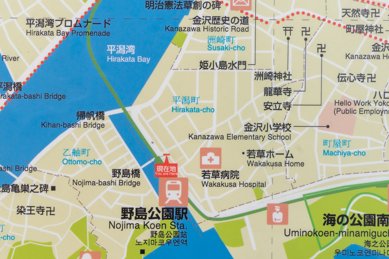 この海、後々見つけた地図によると、平潟湾っていうみたいです。Hirakata Bay。プロムナードもあるんや。