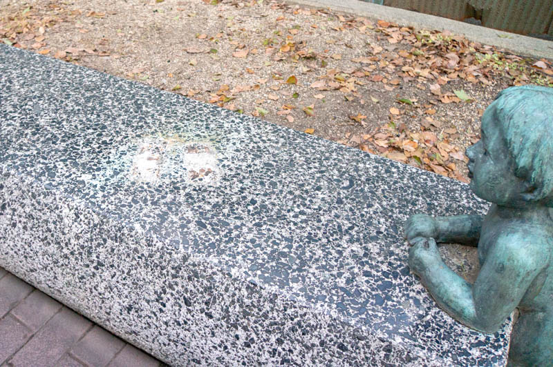 もう1人の子供の銅像が市民会館の前に座っていました。