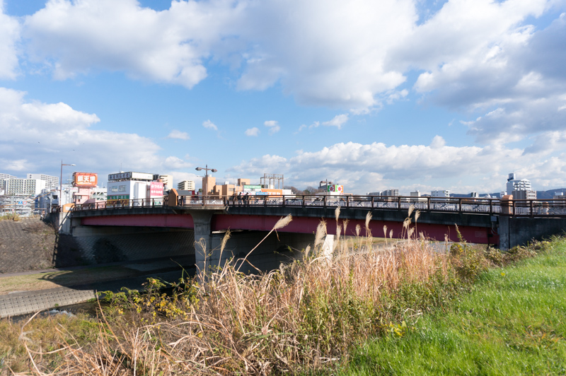 イズミヤや市民病院、関西外大中宮キャンパスへ行く時に使う人も多いでしょうね。下に流れているのは天野川です。