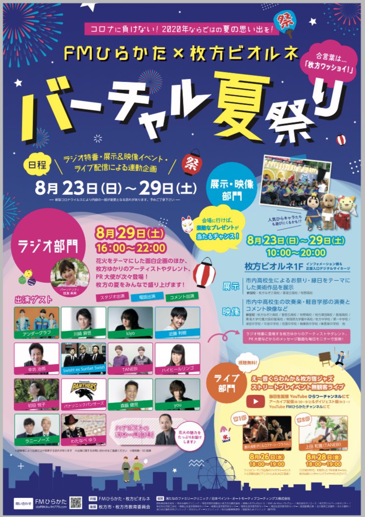 あっ、YouTubeでは聞けませんのでご注意を!!#バーチャル夏祭り— FMひらかた(周波数FM77.9MHz) (@fm779) August 29, 2020