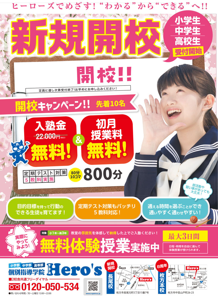 個別指導学院ヒーローズは1コマ1,100円(税込)からの個別指導塾。