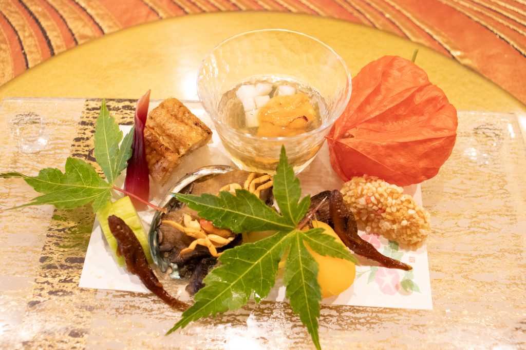 中八寸はひとつのお皿に海のもの・山のもの・川のもの・土のものを取り込み、お料理から季節の移ろいを感じてもらえるように盛り付けているそう。