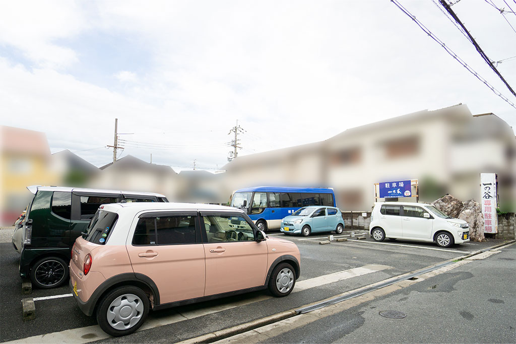 お店横の道を進むと左側に駐車場があります。