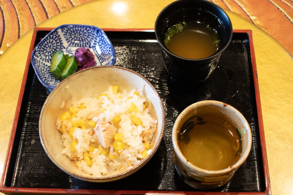 最後はご飯ものと水物(この日はアムスメロン・西瓜でした)で締め。