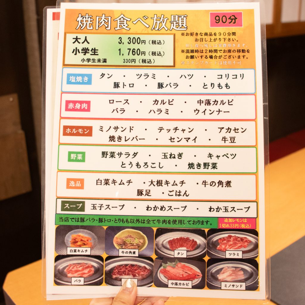先頭のタン、カルビとロースがつづきトリは堂々の特選ハラミ。