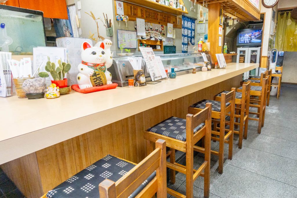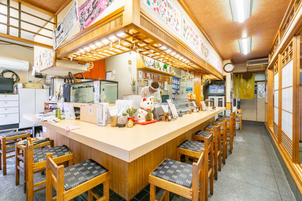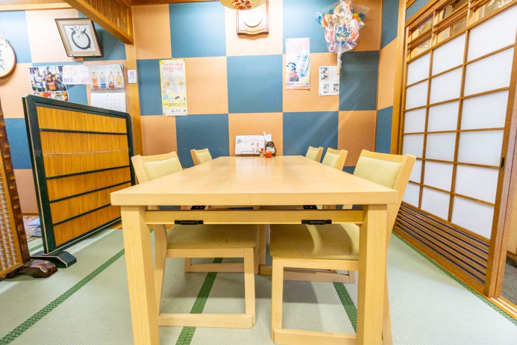 カウンター席の後ろには、小さなお子さん連れでも利用しやすい座敷や、膝の悪い方も利用しやすいテーブル席もあります。