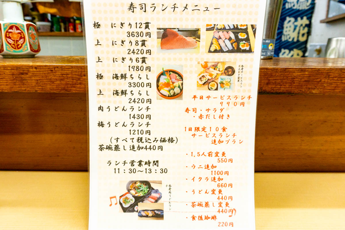 追加料金で1.5人前に変更したり、いくらやウニなどのネタを追加することもできます。