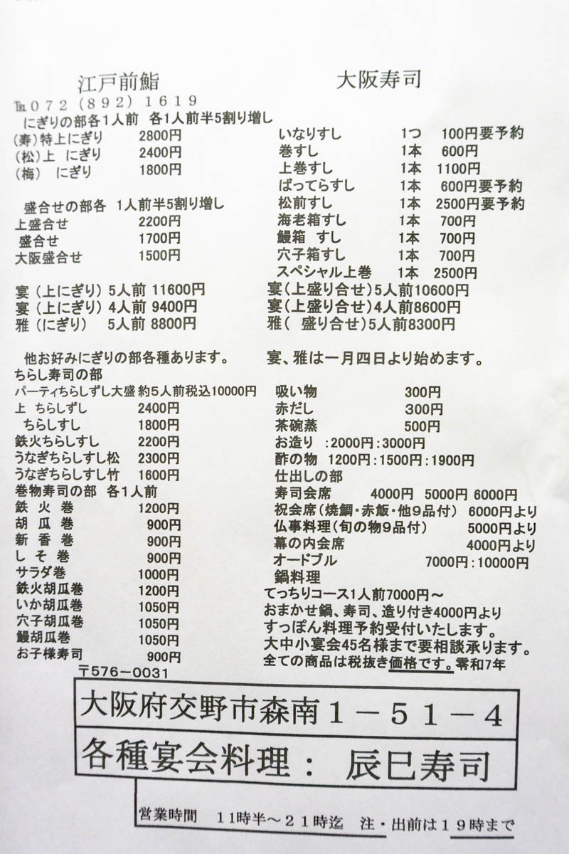 辰巳寿司 営業時間 11:30-13:30 17:00-21:30 定休日 月曜日 電話番号 072-892-1619 住所 大阪府交野市森南1-51-4 関連リンク パルね紹介ページ 食べログ Instagram Facebookページ ※店舗情報、記事内に掲載している商品、価格等は取材時点のものです。 ※表記している価格はすべて総額表示です。