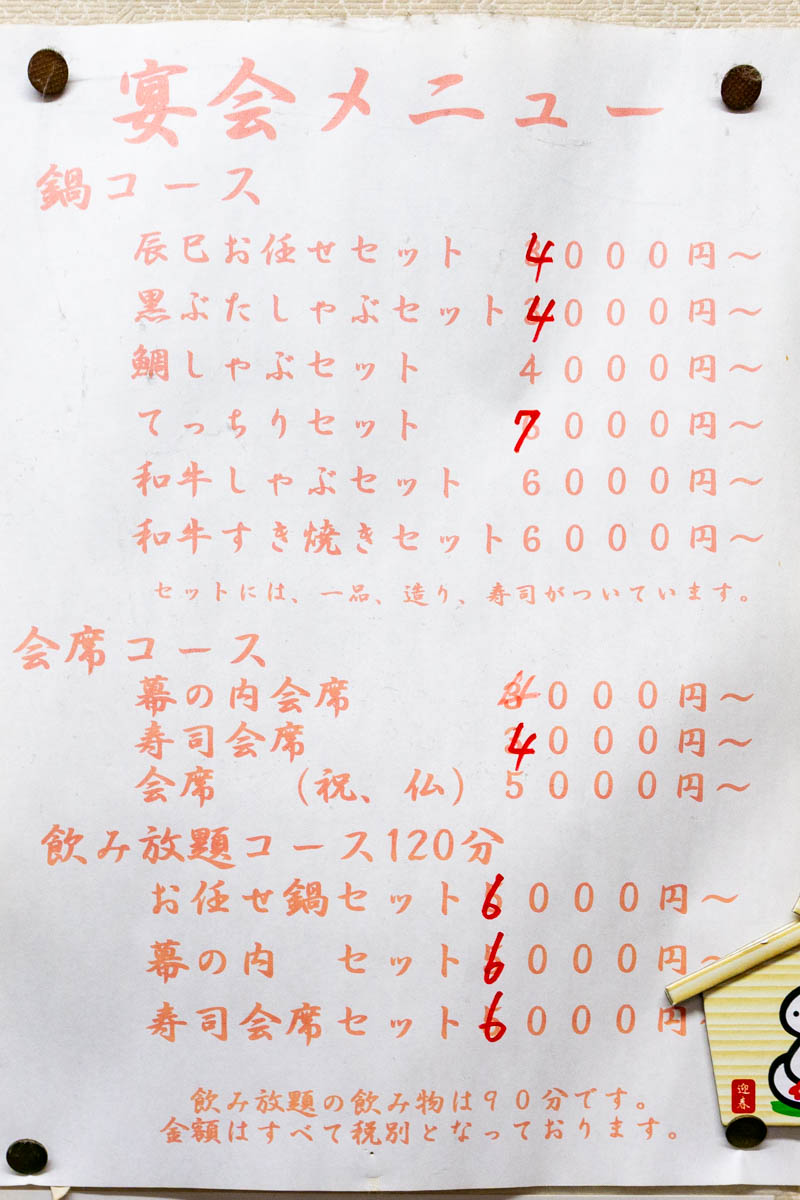 お寿司はもちろん、宴会メニューや鍋メニューも充実しています。