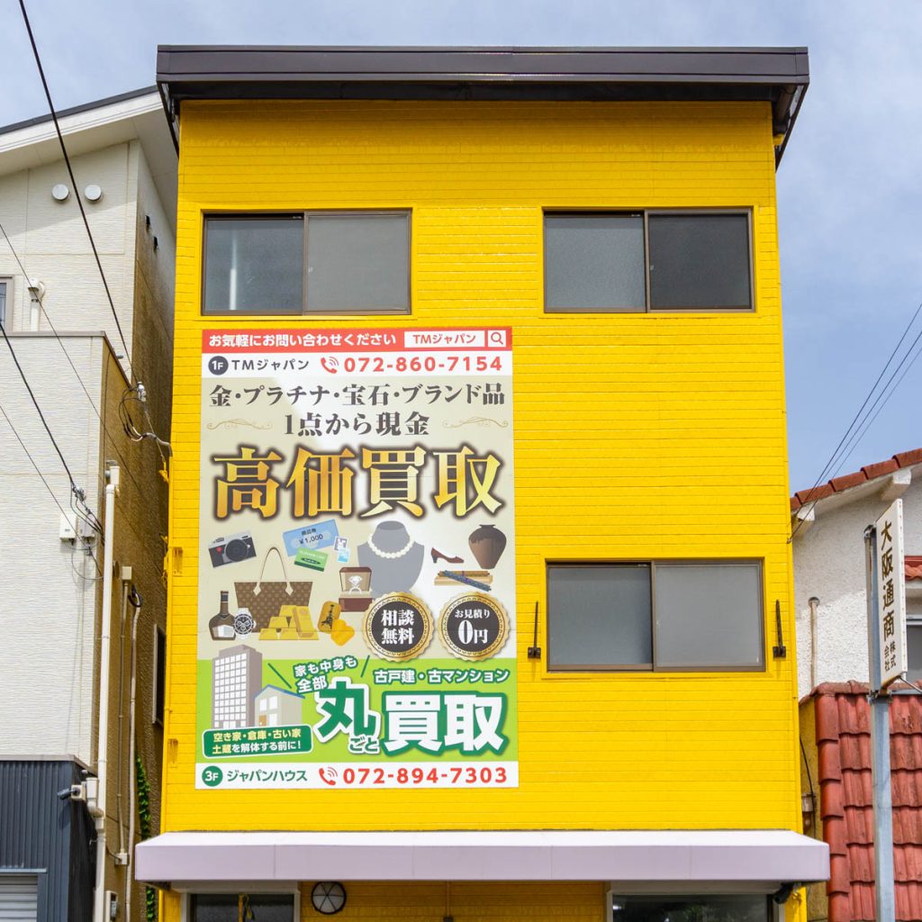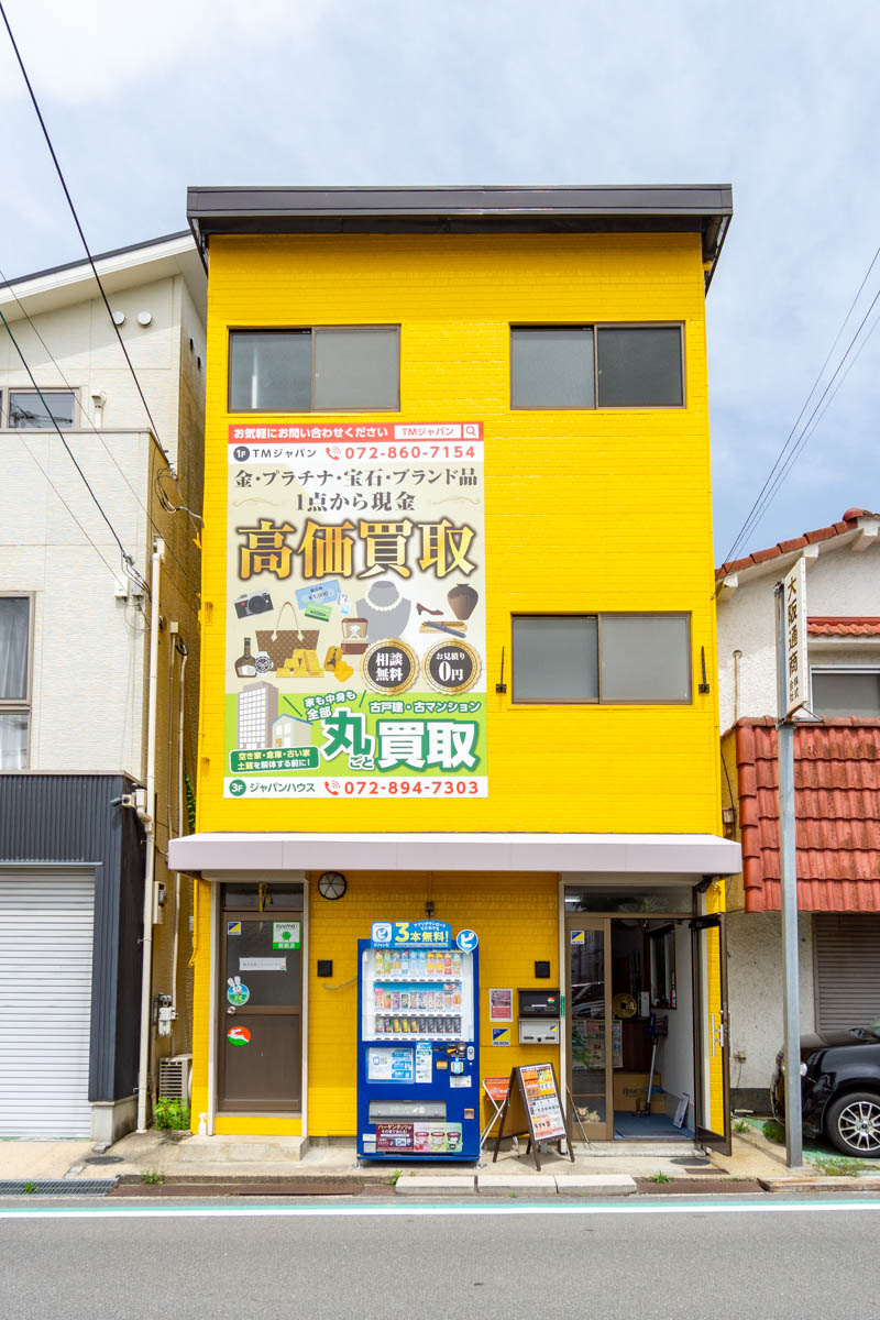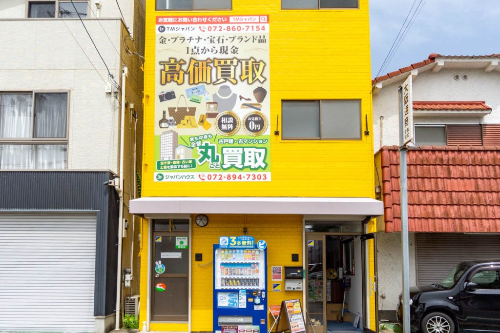 TMジャパンは貴金属・ブランド品の買取店で、この黄色い建物が目印!