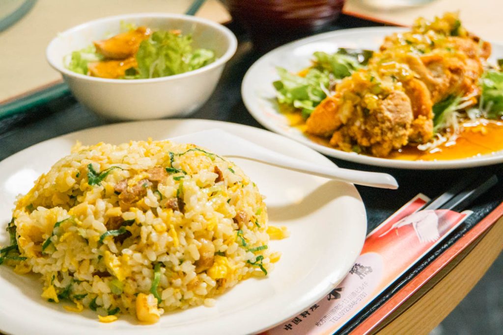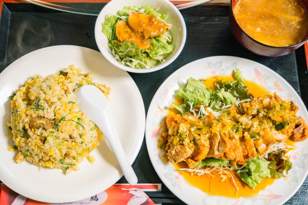 今回は「ユーリンチー」にしました。白ご飯を炒飯に変更でき、炒飯(白ご飯)&サラダはお代わりもできるそうです。炒飯がお代わりできるというのはかなり珍しいのでは!