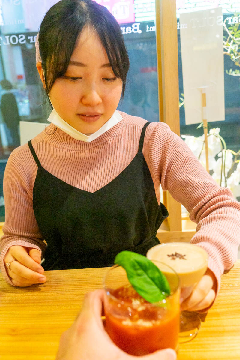 「めっちゃバーっぽいよね、全体的に!バーっぽい料理で、しかもハイレベル、そんな感じする」