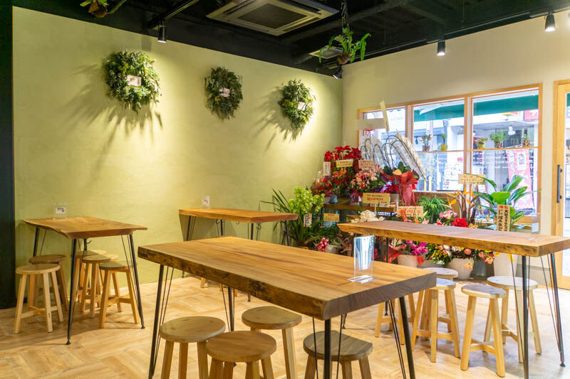 開かれててめっちゃ入りやすいバーですし、テーブル席もあって、最強ですよ!