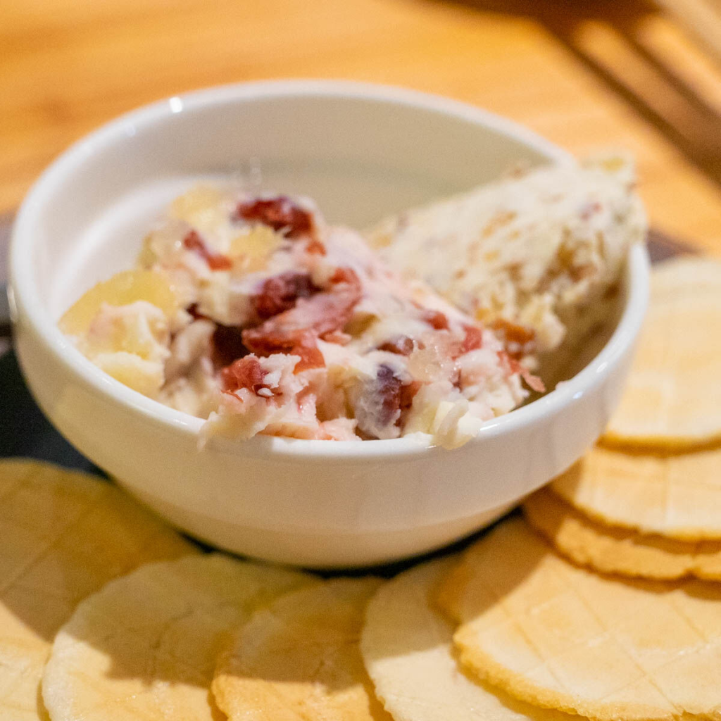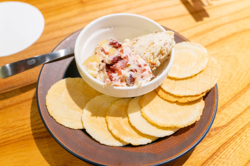 そしてやってきたフード。これは「ナッツとドライフルーツのクリームチーズ……ここでレシートが途切れていて正式名称はわからないんですが(500円)」。