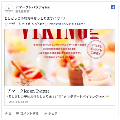 まず、冒頭でお話したように、アマーク・ド・パラディICCのデザートバイキング告知は、公式サイトでもやっておらず、SNS(Twitter・Facebook・Instagram)のみ。