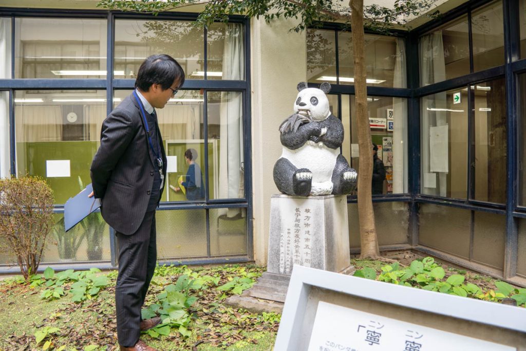 枚方市制施行50周年、上海市長寧区との友好都市10周年のお祝いとして寄贈されたからでした。お名前は寧寧(ニンニン)なんだって。当時の区長が名付け親!