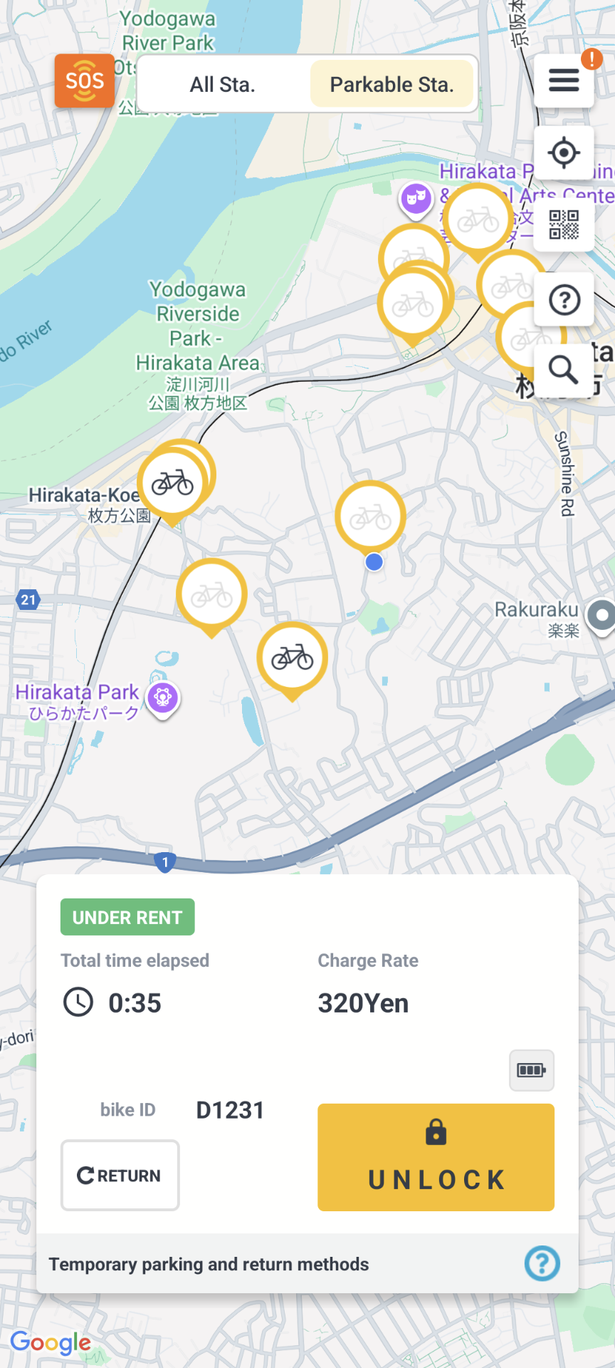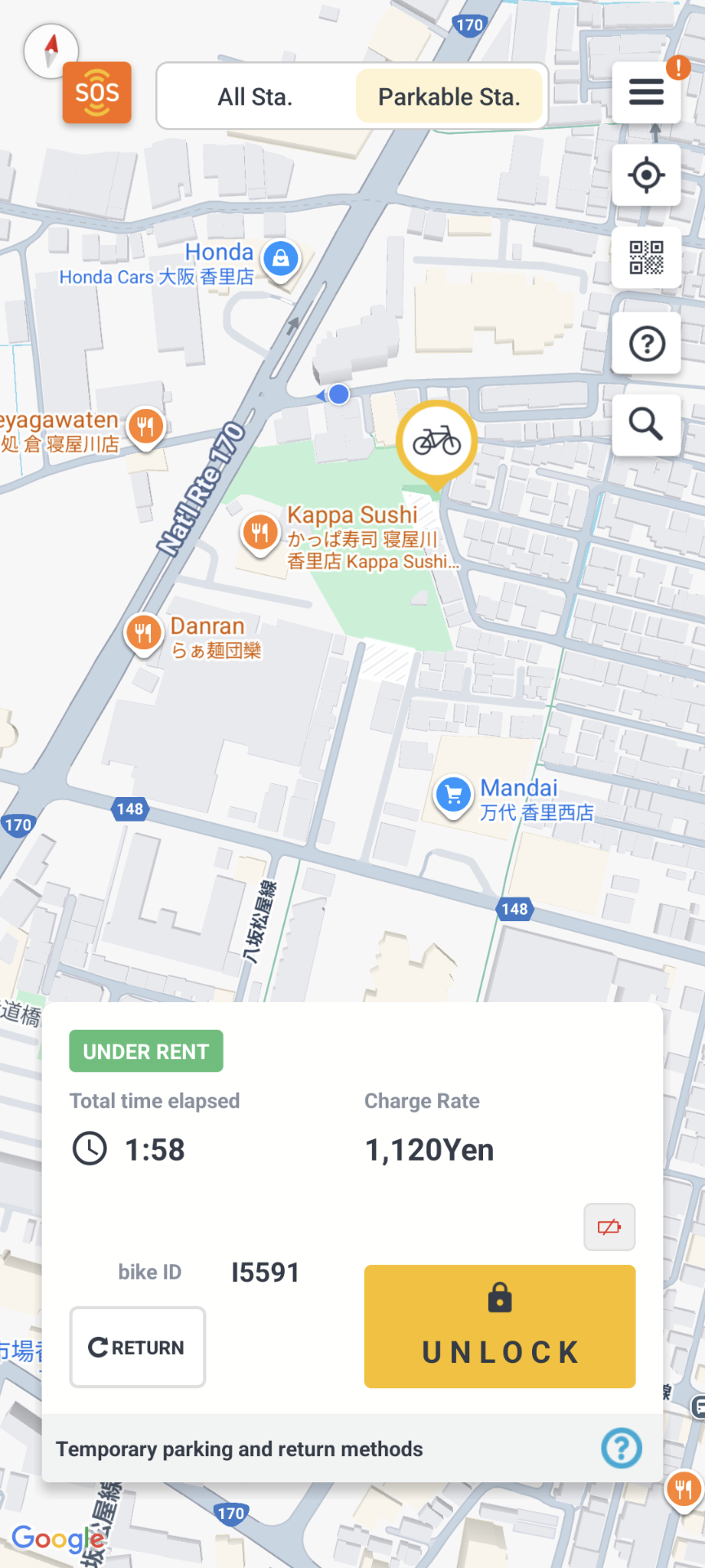 ※自転車の酒気帯び運転等について 、罰則として5年以下の懲役又は100万円以下の罰金が規定されているのでアルコールを飲んだ後は大人しく、始発を待つか歩いて(約5時間くらい)帰りましょう!