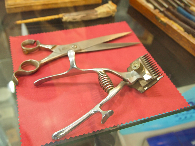 上の写真にも写っている初代のおじいさまが実際に使われていたハサミとバリカン機。かなり年季入ってます