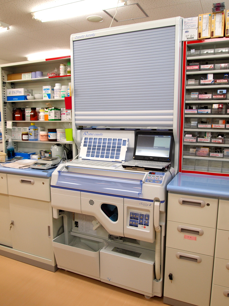 これは「分包機」という機械。薬(1回分)を袋に分けてくれます。口で説明するのもなんなんで・・