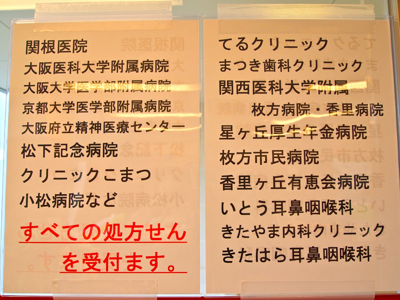 処方せんの受付をされています。グループ会社の薬局が枚方には5店舗あります