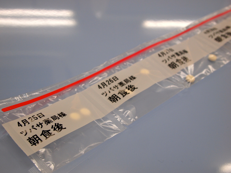 このように分包することで、お年寄りや老人ホームのスタッフのみなさんの間違いを防げるのだそうです。字も大きめではっきり見えるのがいいですね