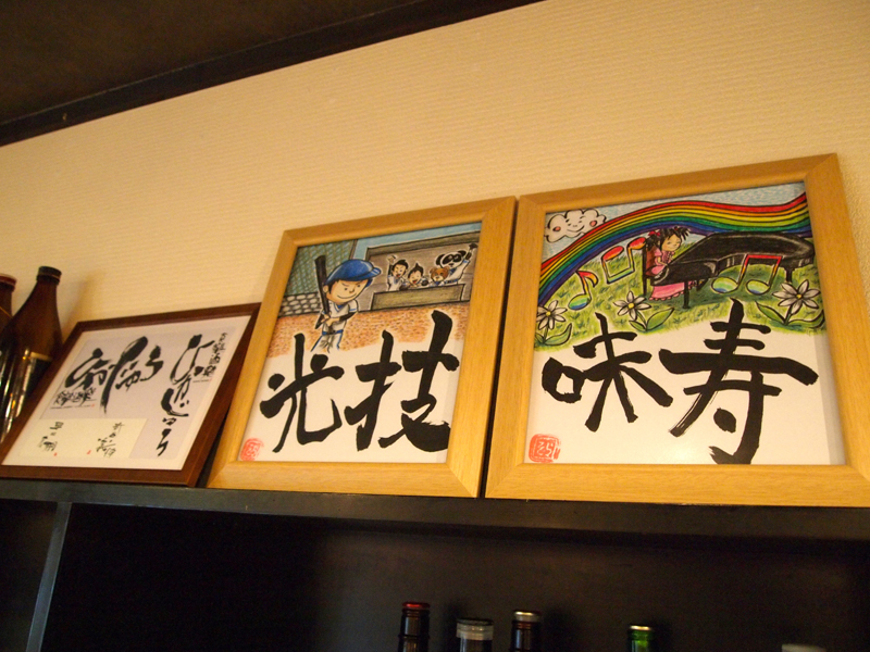その答えがこの写真に隠れています。「光技」「味寿」というのは、オーナーさんのお子さんの名前なんだそうです!長男の光技(ひかる)くん、長女の味寿(あんじゅ)さんの名前から拝借して「ひかじゅ」。残りの「ろ」は???これは店長さんの下の名前、義博(よしひろ) の「ろ」!!「オーナーが僕の名前一文字だけ使ってくれたんです(笑)」と店長さんがおっしゃってました(*´∀`)