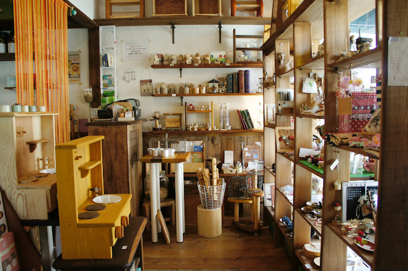 木のぬくもりを大切にしたお店にはゆったり雰囲気の『Cafe』と、たくさんの雑貨や「レンタルボックス」があります。『レンタルボックス』には手作りの作家さんたちが心をこめて作られた作品が販売されております。是非一度、ご来店くださいませ!
