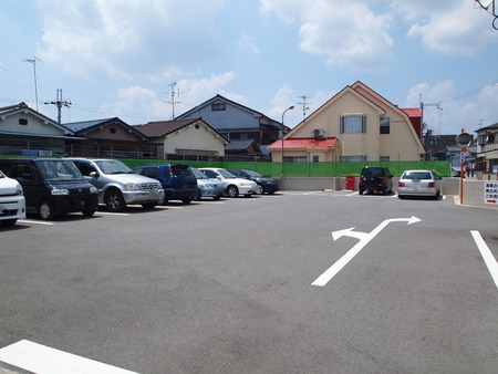 奥には11台分の駐車スペースが。ここが満車でも右の矢印の方に進めば、共用駐車場があるので安心。