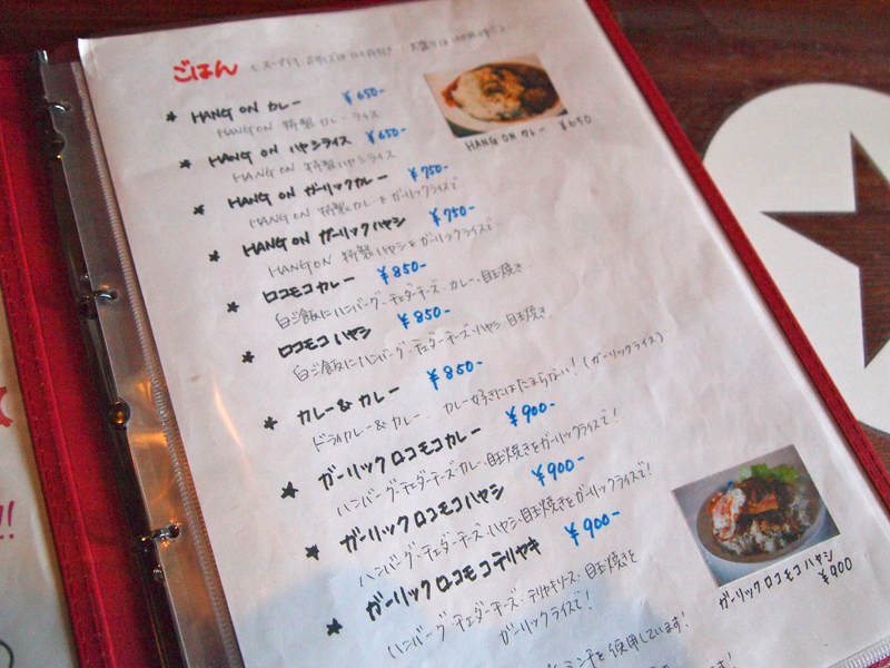 国産牛100%ミンチを使用したハンバーグのロコモコがメイン。カレーソース・ハヤシソース・テリヤキソースも特製。