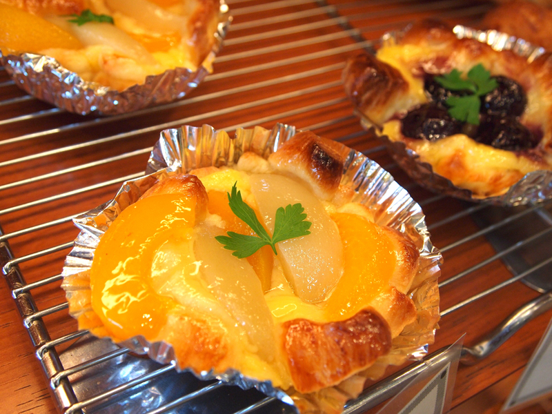 ピーチデニッシュ(160円)とダークチェリーデニッシュ(170円)。
