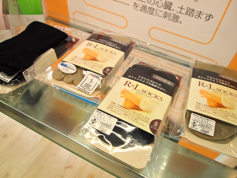 特許を取得した左右非対称の「R×L SOCKS」(武田レッグウェアー)。