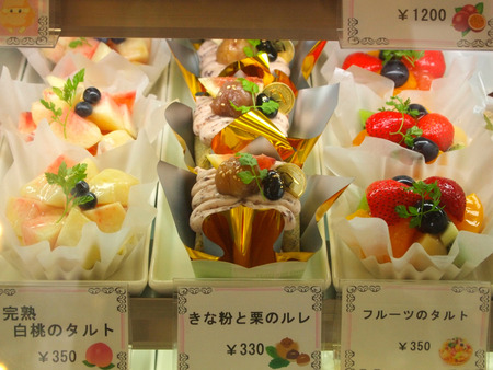 ショーケース真ん中あたり。見た目も楽しめるケーキがいっぱい。