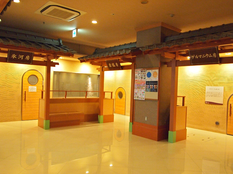 地下に広がる着衣サウナゾーン。(→着衣サウナとは?)岩塩房・ゲルマニウム房・氷河房があります。