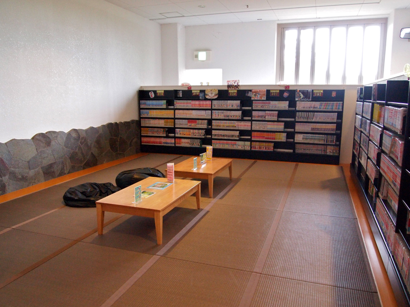 デッキにはゴロゴロしながら漫画が読めるスペースも。漫画は約6000冊置かれています。