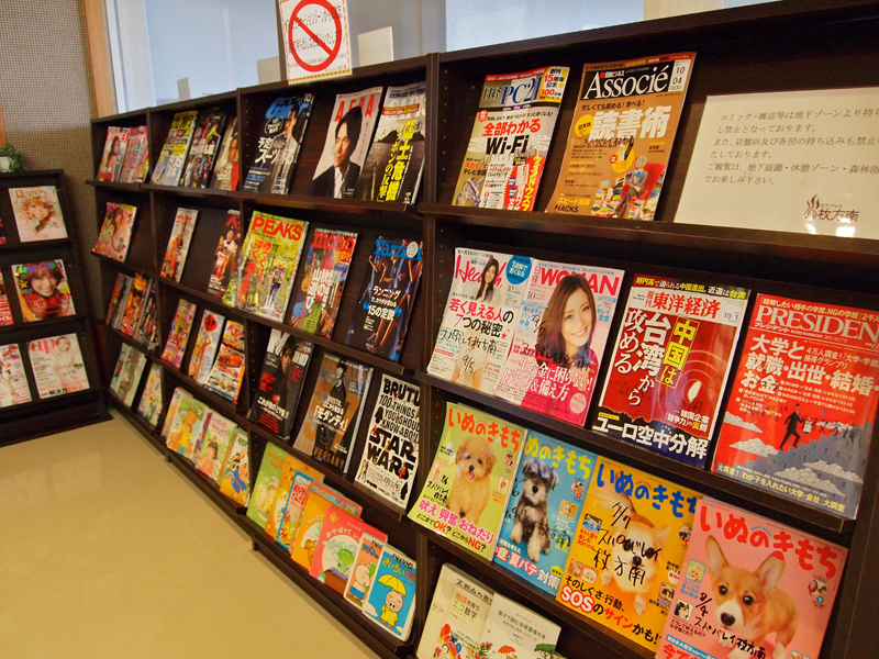 ・着衣サウナゾーン(地下施設)で利用して頂ける漫画6,000冊と雑誌110冊