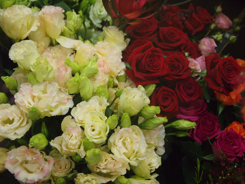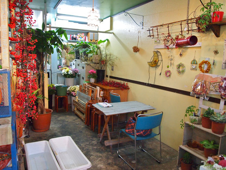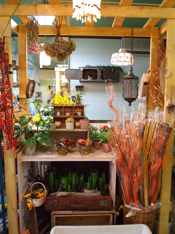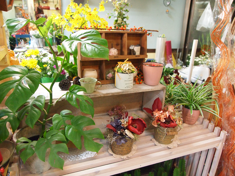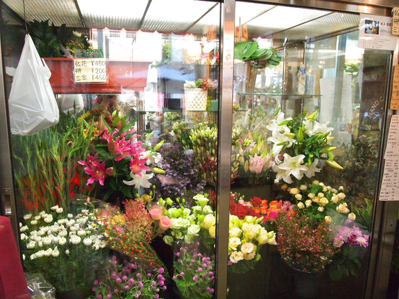 店内奥にあるフラワーコールキーパー。きれいな生花がいっぱい。