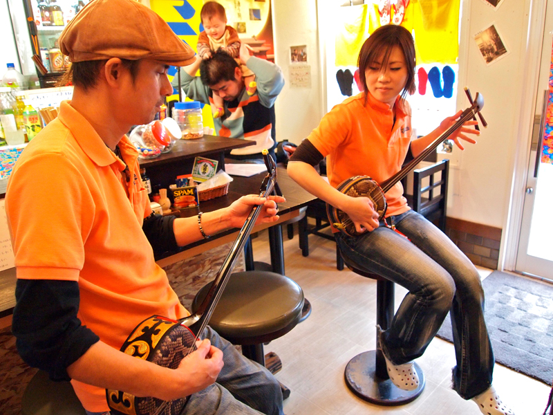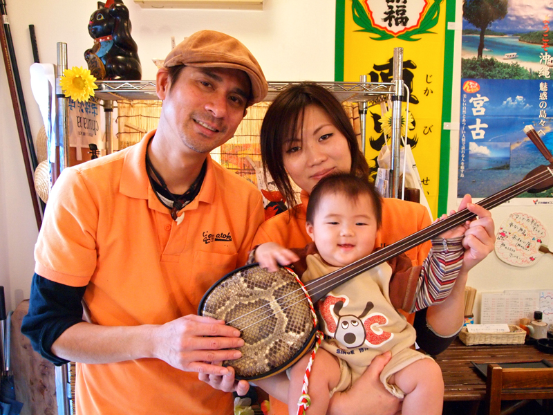 ご家族3人そろって。沖縄出身っぽいご主人は実は関西出身で、奥様が沖縄出身です。未来の三線奏者