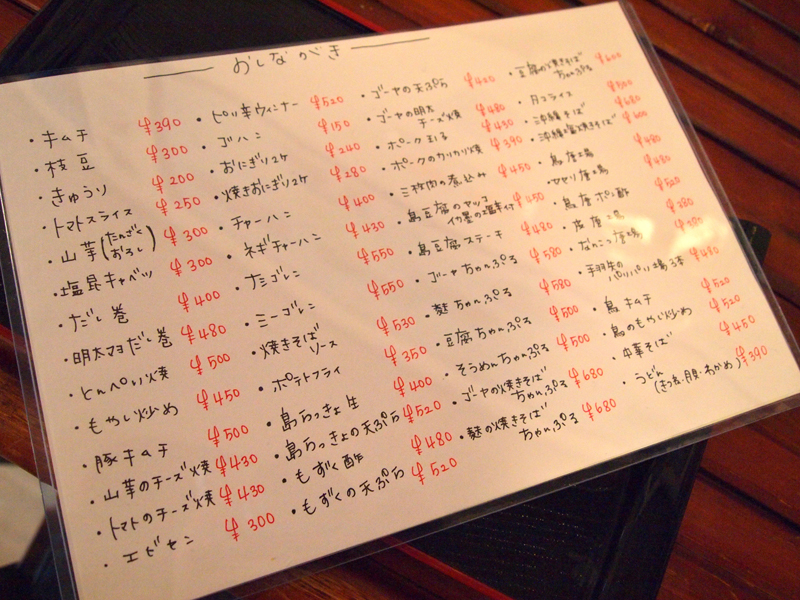 ・料理メニューはお手頃価格、沖縄料理だけしかないイメージだがメニューの半分は鳥料理(炭火焼きも有り)