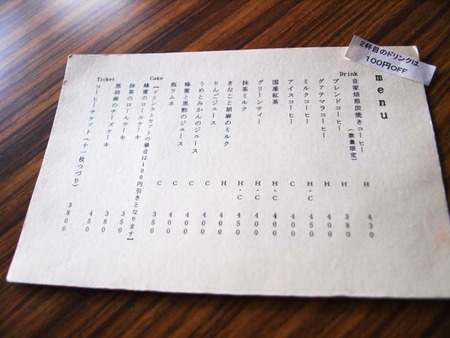 テーブルやイス、棚はカリモク60が使われています。各テーブルにサイズと値段が書かれていて、購入する事も出来ます。