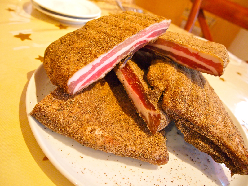 お店で作っている豚のバラ肉、パンチェッタ。かなり大きいです。