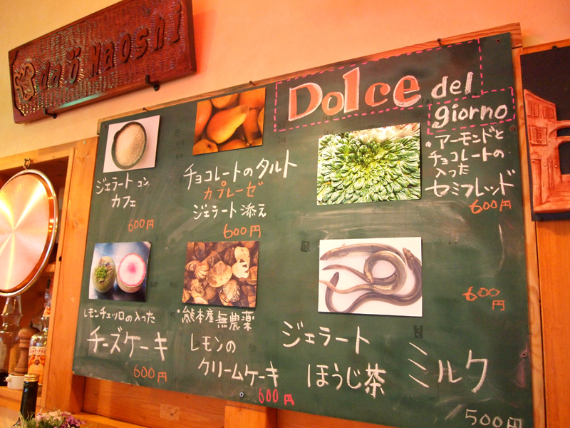 | ★京都・賀茂の有機野菜を使用、季節の野菜を仕入れている季節の野菜を仕入れている ★魚は大阪市中央卸売市場から仕入れている ★奈良のお茶で作るほうじ茶ジェラート ★レモンを用いたリキュール「リモンチェッロ」を使った食後酒 ★パスタ・アイス・ハムはすべてお店で作っている ★備長炭利用の精製機で作る弱アルカリ水を使用 ★定番のトマトソースパスタ ★ラザニアのオーブン焼き ★南イタリアのレモンクリームケーキ ★エスプレッソマシンで淹れる本格エスプレッソコーヒー ★お手頃なワイン |
