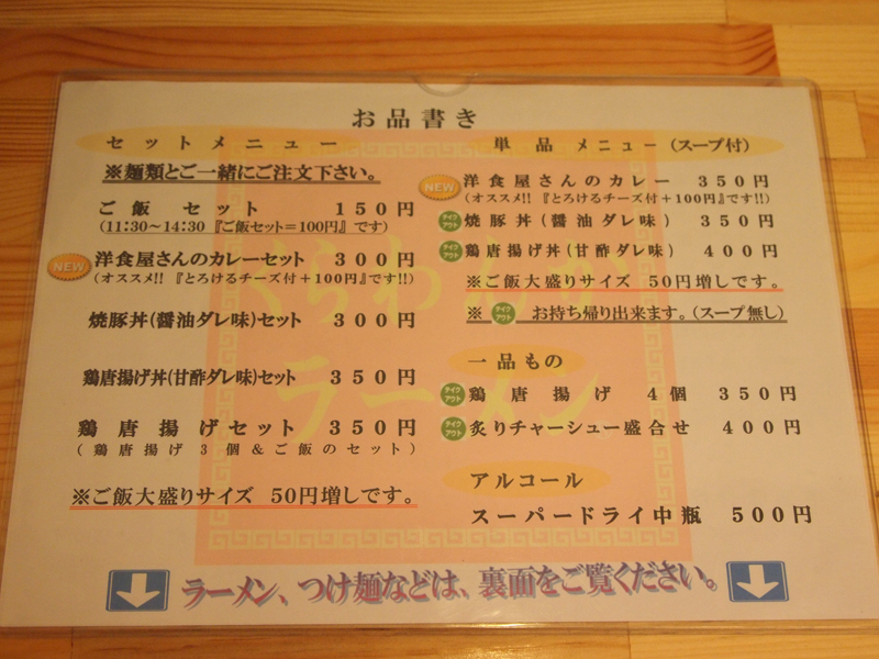 | 枚方で商売をしたいという思いから「くらわんかラーメン」という店名にしました。店内は10席ですが、地域に密着したお店です。お子様やお母さん方、ご年配の方にも安心して食べていただけます。バス通りにあるので通勤や通学途中に見かけられた方もいると思いますが、知らない方も是非一度お越し下さい。 |