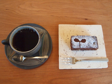 辻本さんのコーヒーと別のスタッフあみさんが作られたブラウニー。