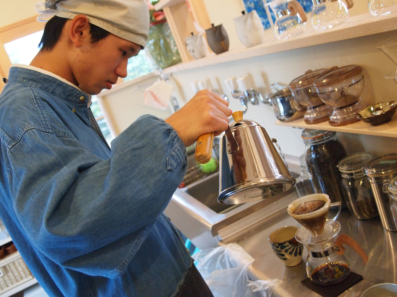 コーヒー担当の辻本さん。飲んだ人が「おいしい、また来たい」と思ってもらえるように心を込めて淹れているそうです。
