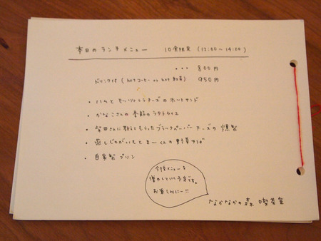 ランチメニュー。料理を作ったスタッフさんの名前付きで親近感がわきます。