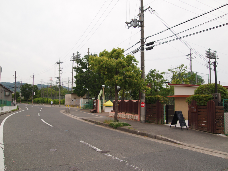 あっちに行くと踏切があって藤阪中町の学研都市線沿いの道に出ます。向かいには枚方公済病院。