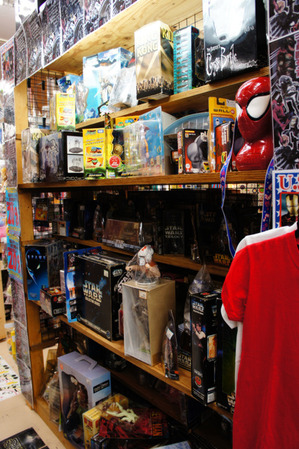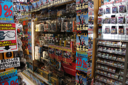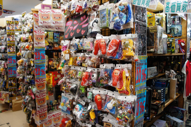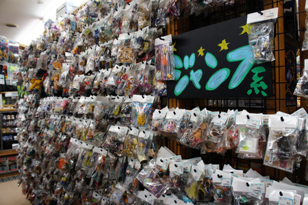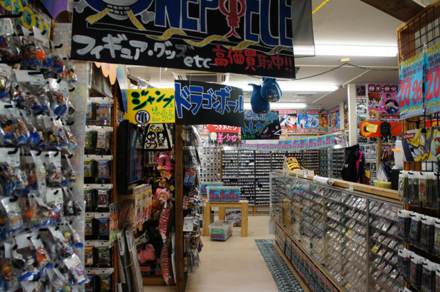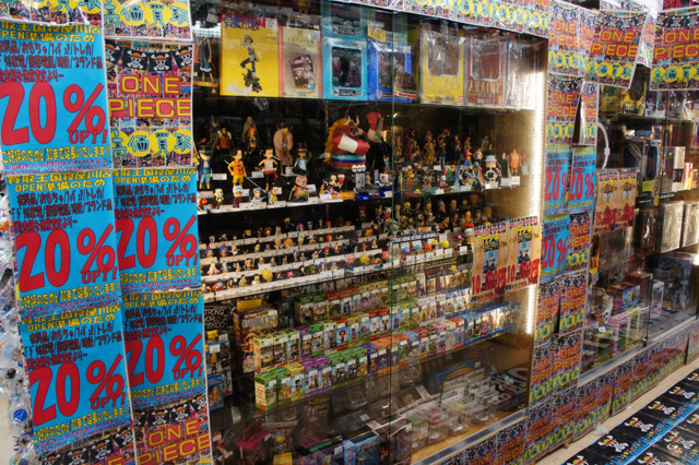 ONE PIECEをはじめ色々なジャンルのおもちゃ・フィギュアがびっしりと並んでいます。