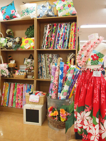 パッチワーク生地、プリント生地、リボン・服飾材料・ボタン、手芸材料、キット・毛糸など服飾関係のものが多く置かれているフロアです。